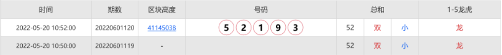 系统会选出哈希值的最后5个数字作为开奖数据。这个案例的哈希值最后5个数字为:5,2,1,9,3。