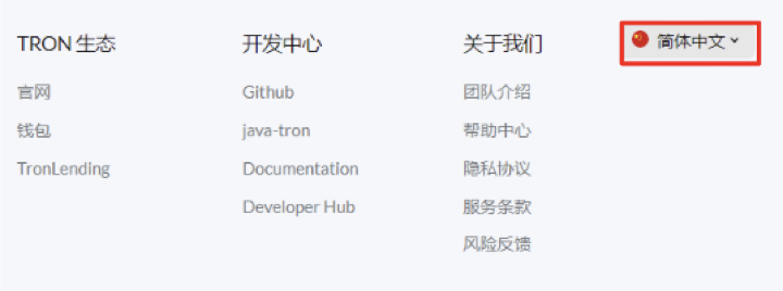 如果要更换 https://tronscan.org/ 语言,滑到页面尾端,选择你要的语言。